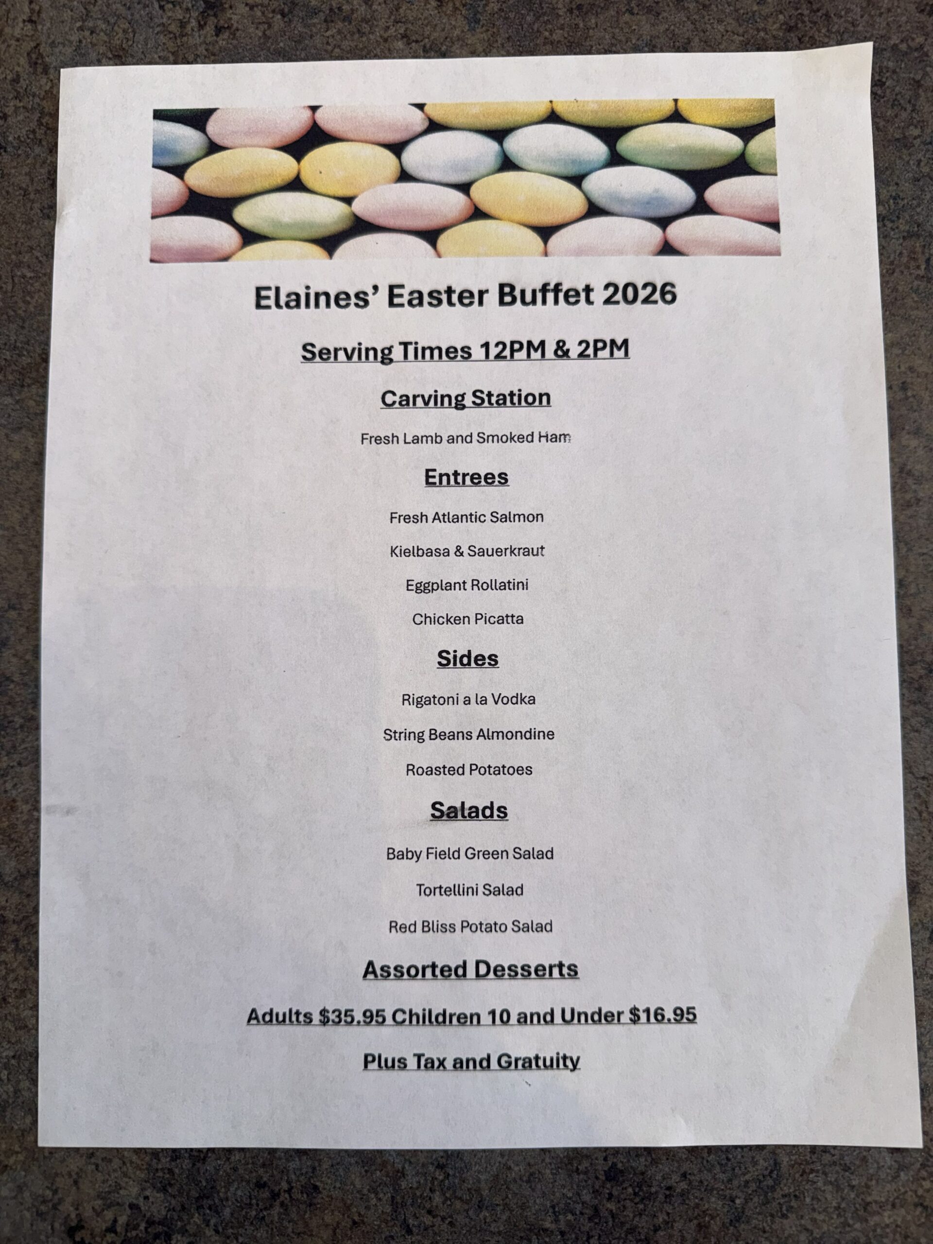 Seatings Available at 12pm and 2 pm.