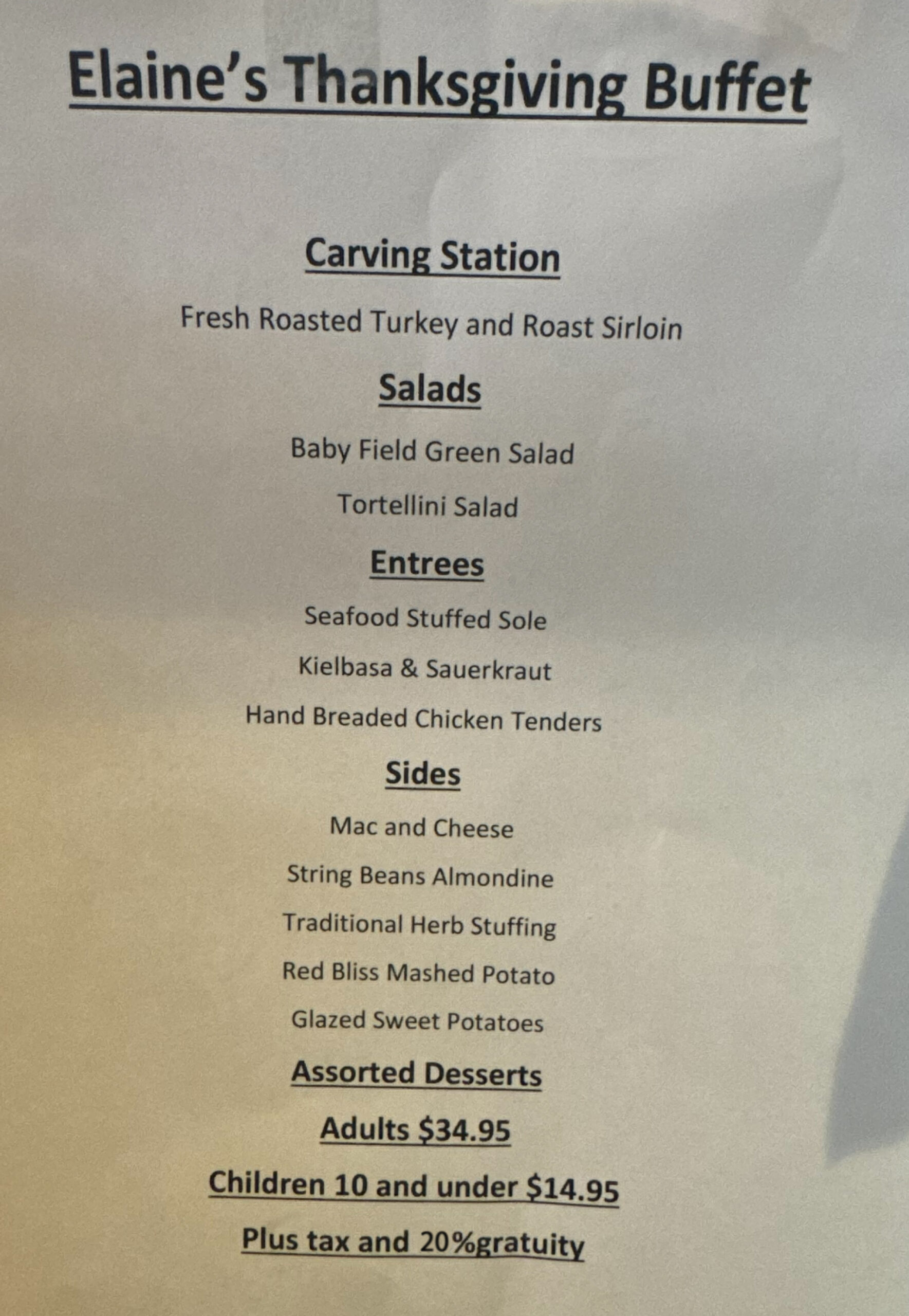 LET ELAINE'S TAKE CARE OF THE MEAL SO YOU CAN GIVE THANKS WITH YOUR FAMILY AND FRIENDS.